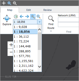 7. To browse to a specific predefined scale, click the Set the Map Scale drop-down arrow and choose a scale.
